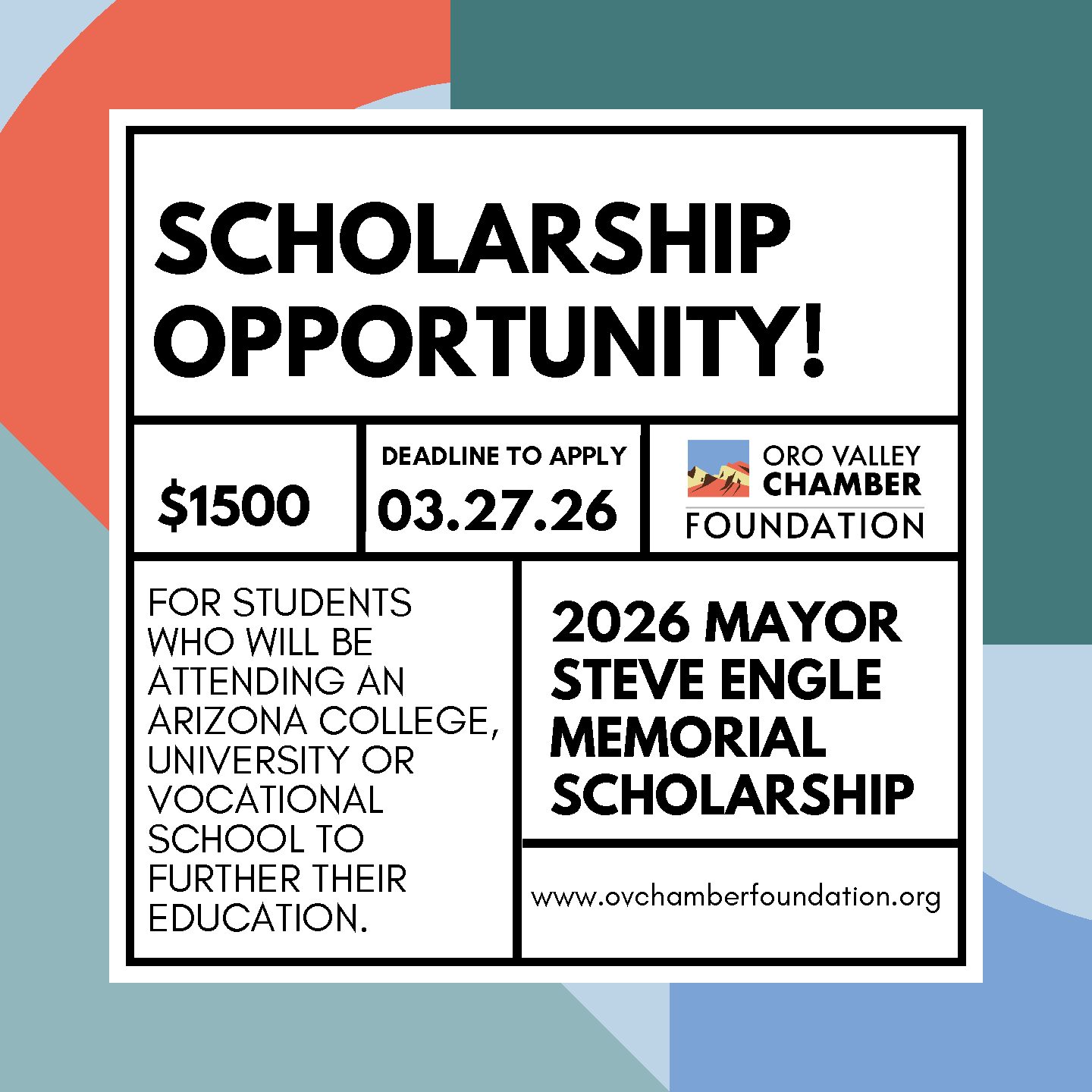 The Greater Oro Valley Chamber of Commerce Foundation was formed as an independent, 501c(3) charitable organization in 2014. At that time, it received the assets and mission from the Oro Valley Community Foundation, which was dissolved.