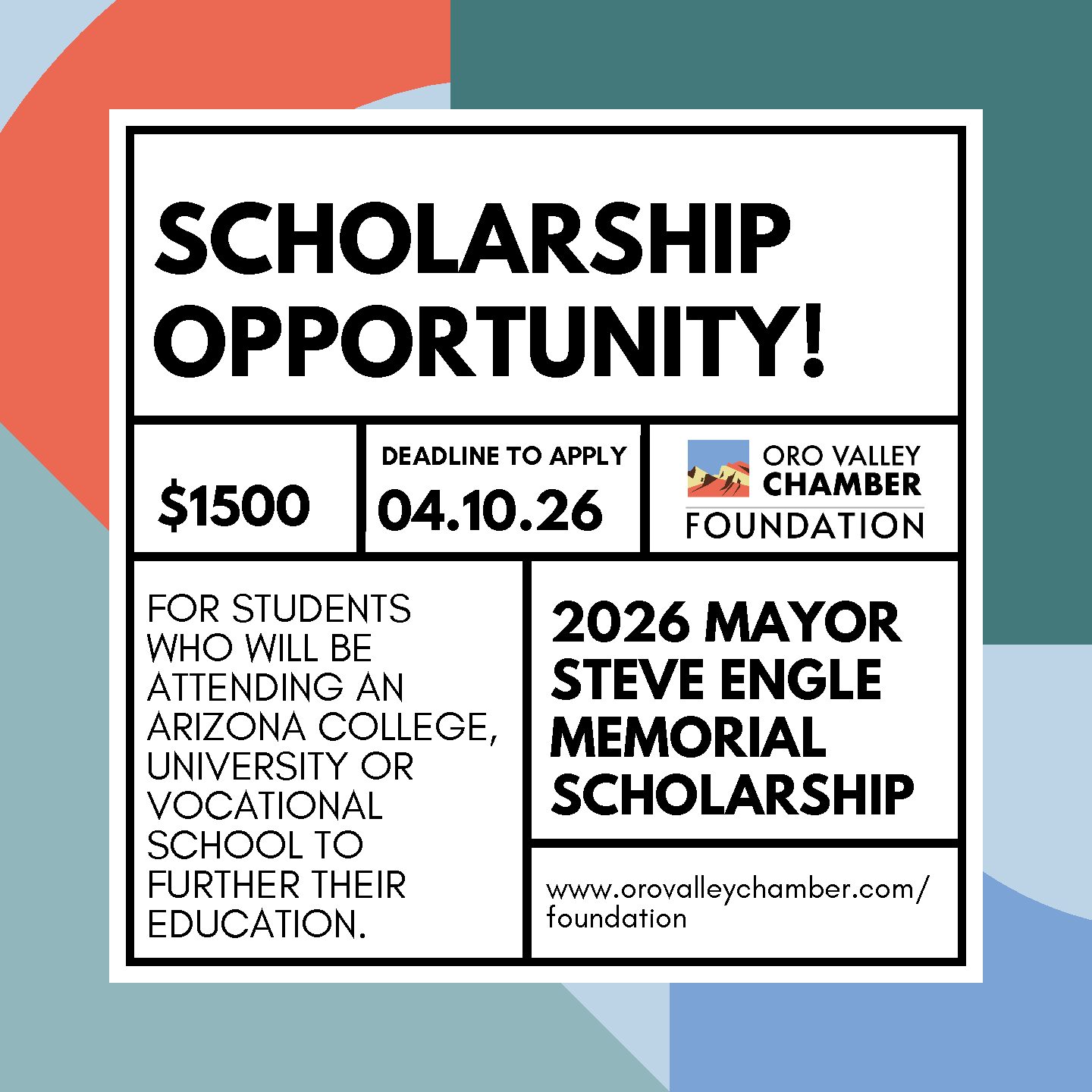 The Greater Oro Valley Chamber of Commerce Foundation was formed as an independent, 501c(3) charitable organization in 2014. At that time, it received the assets and mission from the Oro Valley Community Foundation, which was dissolved.